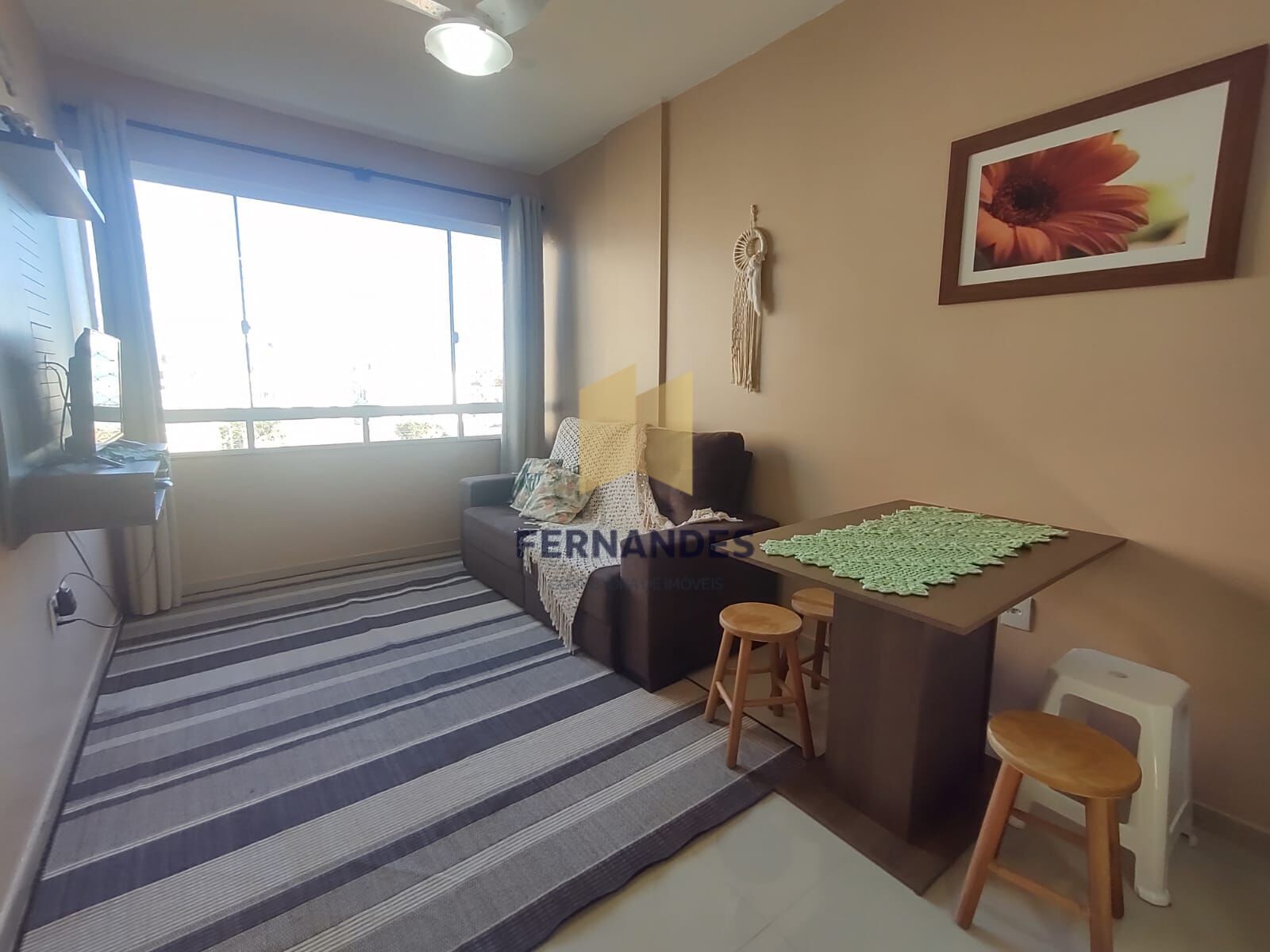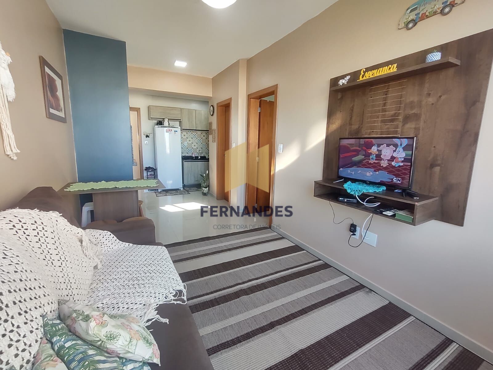 Lindo apartamento pertinho da praia, um dormitório, sala de estar e jantar integrada, cozinha, banheiro, mobiliado e com box para carro. Invista no seu imóvel no litoral.