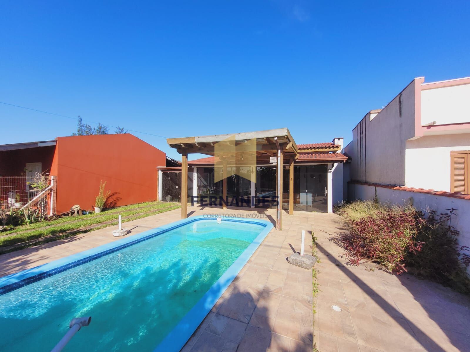 Aberturas de vidroAlvenariaColeta seletiva de lixoEsquadrias de madeiraForro de PVCMobiliadaPergoladoPermite animaisPiscinaPiso cerâmicaQuintalÁrea de lazer