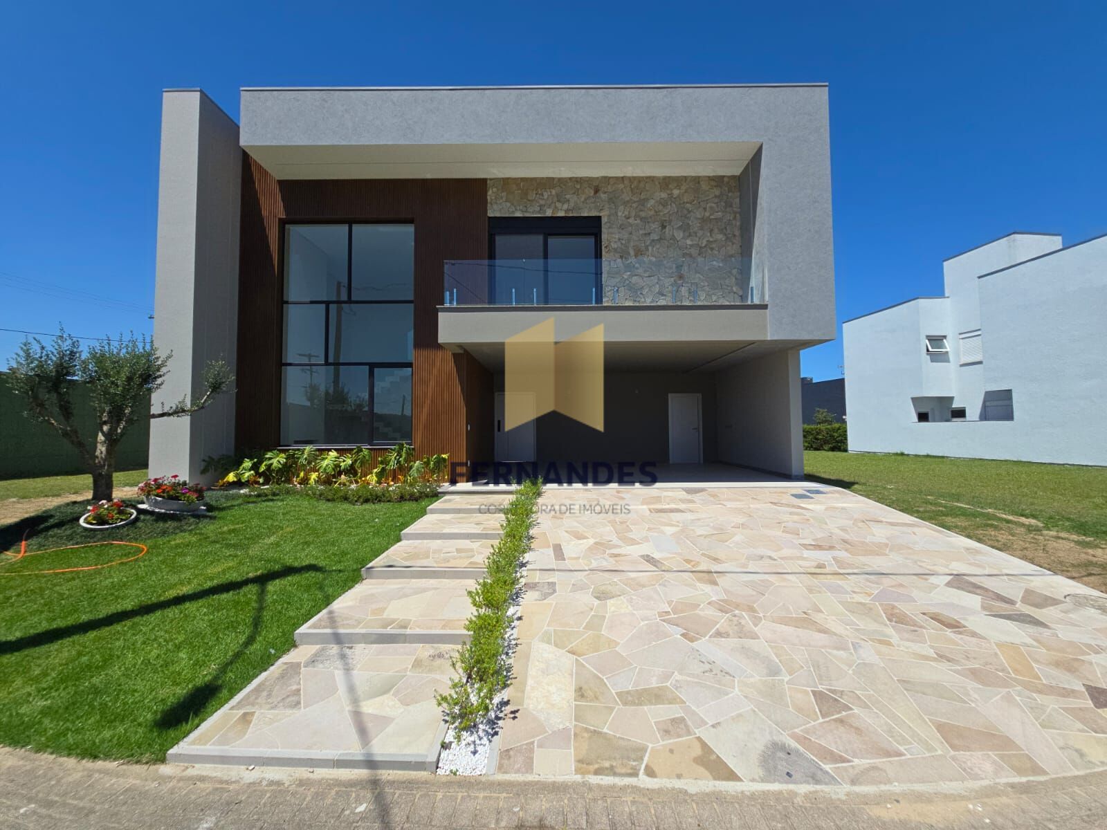 ✅ Fachada com acabamentos em Pedra Moledo e ripados em WPC